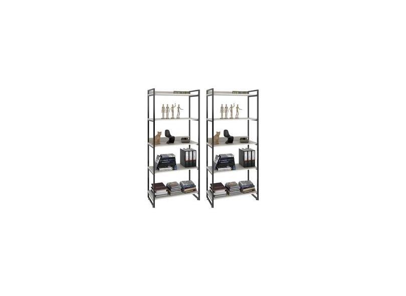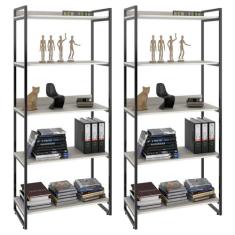 Kit 2 Estantes Livreiro Prisma Estilo Industrial 80cm 5 Prateleiras C08 Snow - Mpozenato