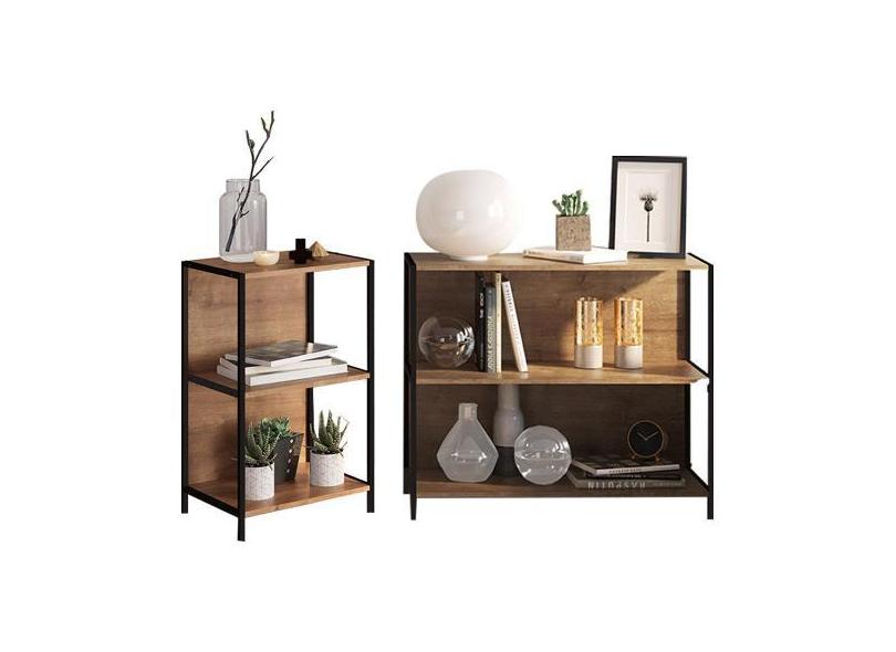 Kit 2 Estantes Livreiros Estilo Industrial Steel Quadra Vermont Base P