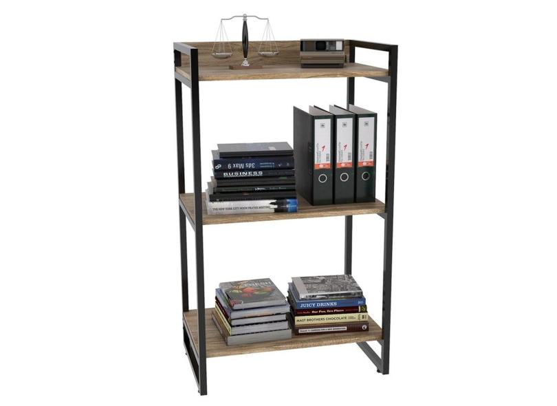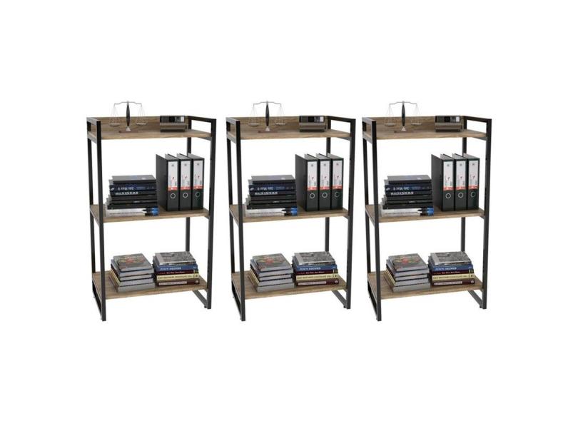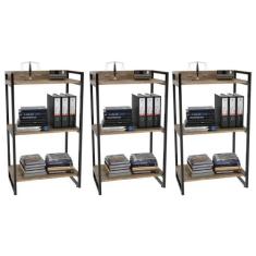 Kit 3 Estantes Livreiro Prisma Estilo Industrial 60cm 3 Prateleiras Carvalho - Mpozenato