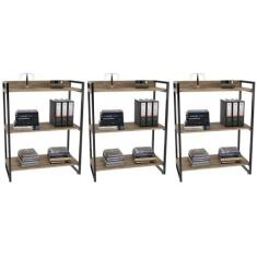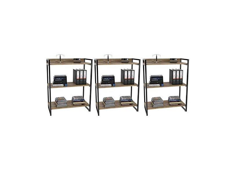 Kit 3 Estantes Livreiro Prisma Estilo Industrial 80cm 3 Prateleiras Carvalho - Mpozenato