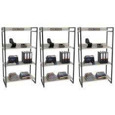 Kit 3 Estantes Livreiro Prisma Estilo Industrial 80cm 4 Prateleiras C08 Snow - Mpozenato