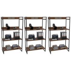 Kit 3 Estantes Livreiro Prisma Estilo Industrial 80cm 4 Prateleiras Nogal - Mpozenato