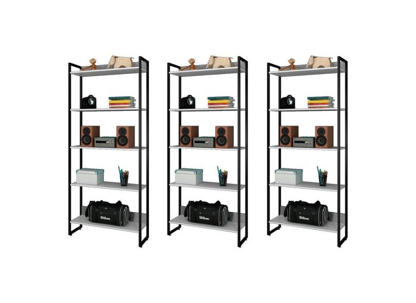Kit 3 Estantes Livreiro Studio Industrial M18 – Mpozenato