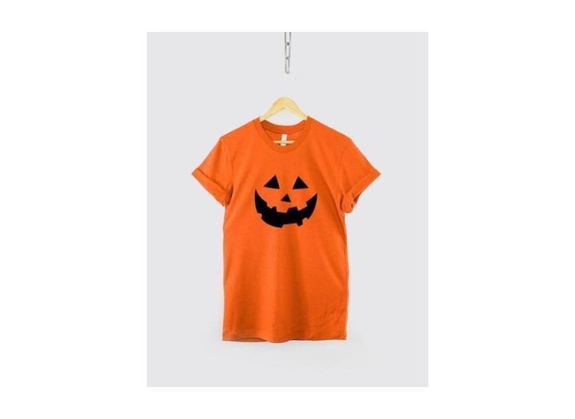 Camisa De Halloween Com Cara De Abóbora Baby Look Fantasia - SEMPRENAL