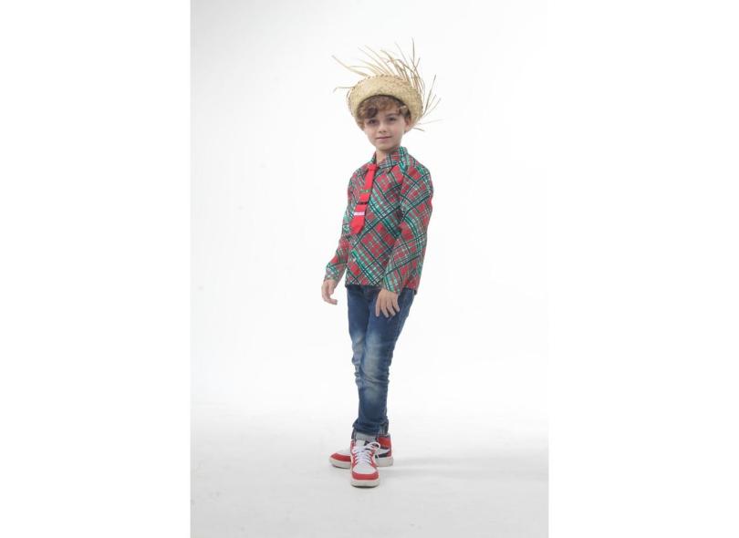 Camisa Infantil Xadrez Vermelho Festa Junina Gravata +Chapéu