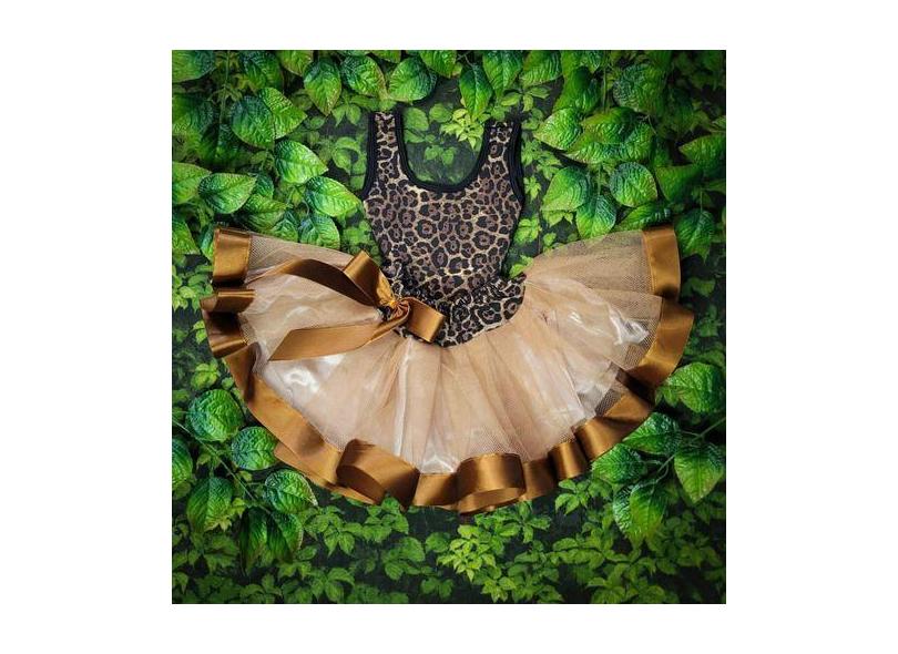 Conjunto Fantasia Body Infantil De Onça Leopardo Saia De Tule - Sines