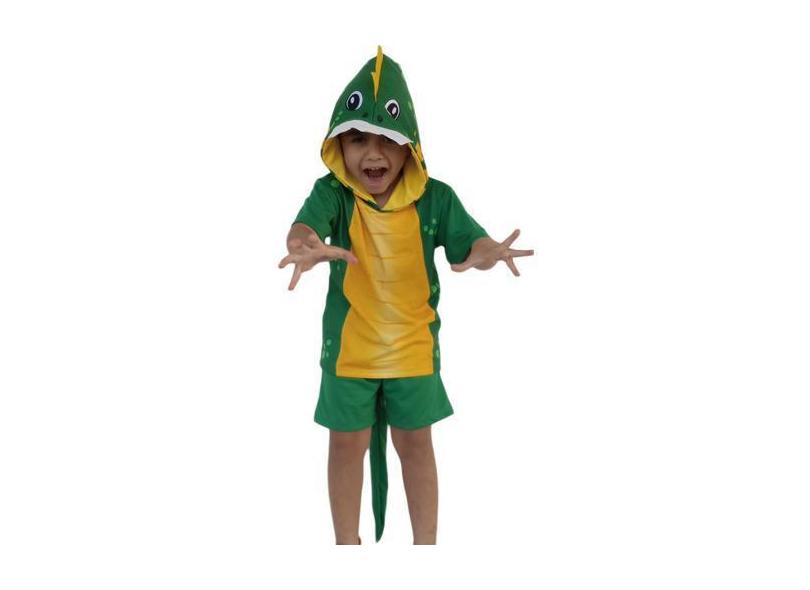 Conjunto Infantil Fantasia Dinossauro Camiseta com Capuz e Short - Cal