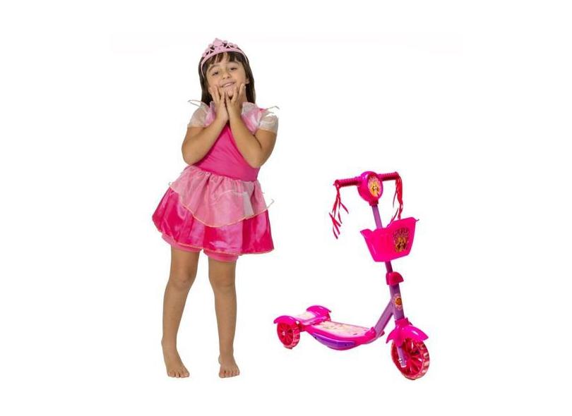 Conjunto Infantil Patinete Luz Som + Fantasia Princesa - DM Toys