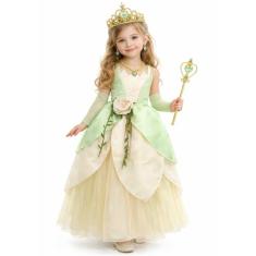 CQDY Fantasia De Princesa Tiana Para Meninas, Fantasia De Sapo De Fada, Festa De Halloween, Vestido Para Crianças Pequenas Com Acessórios Para Cabelo
