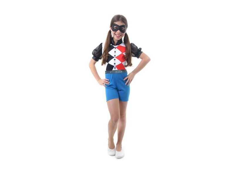 Fantasia Arlequina Infantil Curta - Super Hero Girls - Dc comics, Unic