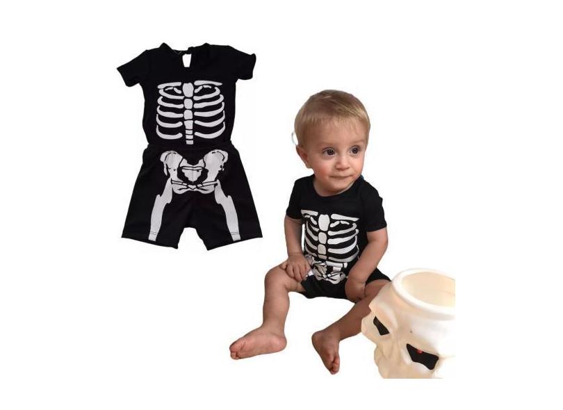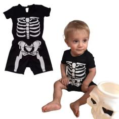 Fantasia Bebê Halloween Esqueleto Body E Shorts M ao GG Mesversário ha