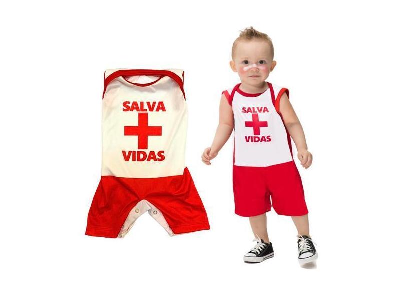Fantasia Bebê Salva Vidas Infantil Para Menino Vermelho e Branco Feita