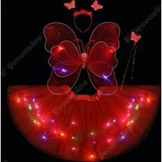 Fantasia Borboleta Infantil Asa Saia Tule Led Tiara Varinha - D' Prese