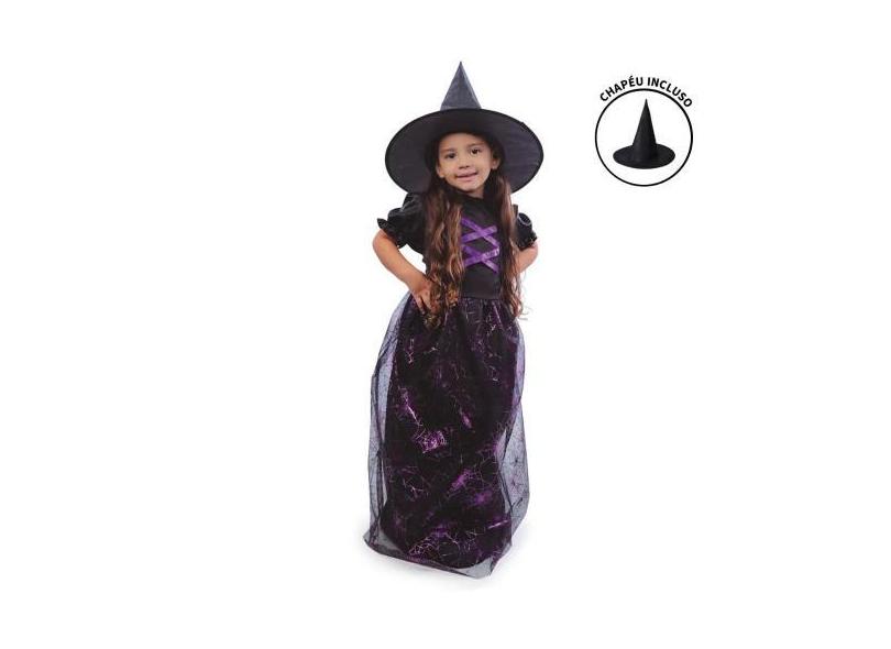 Fantasia Bruxa Elegante Roxa Infantil de Halloween Com Chapéu - Fantas