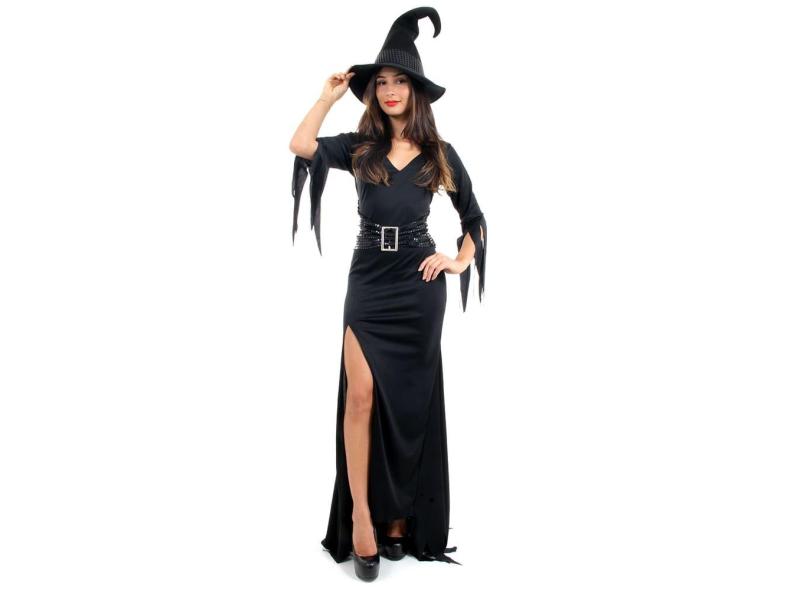 Fantasia Bruxa Feminina Adulto Vestido Longo Luxo C/ Chapéu