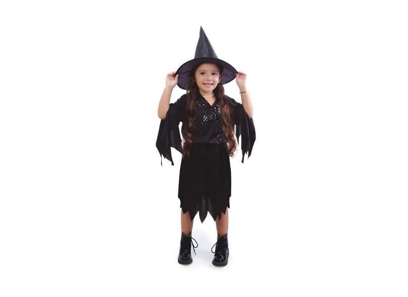 Fantasia Bruxa Halloween Infantil Menina Vestido Preto Clássico e Chap