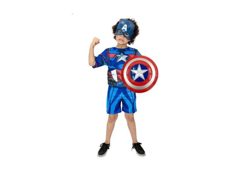 Fantasia Capitão America Com Escudo E Máscara Infantil Heroi - Fantasi