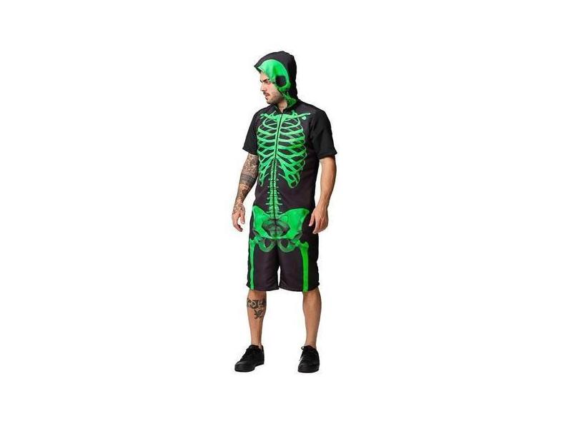 Fantasia Caveira Adulto Macacão Curto com Capuz de Halloween - Fantasi