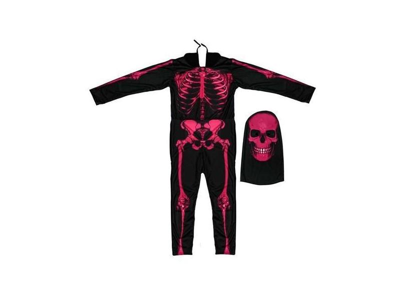 Fantasia Caveira Infantil Com Gorro Esqueleto Com Ossos Rosa Neon - Fa