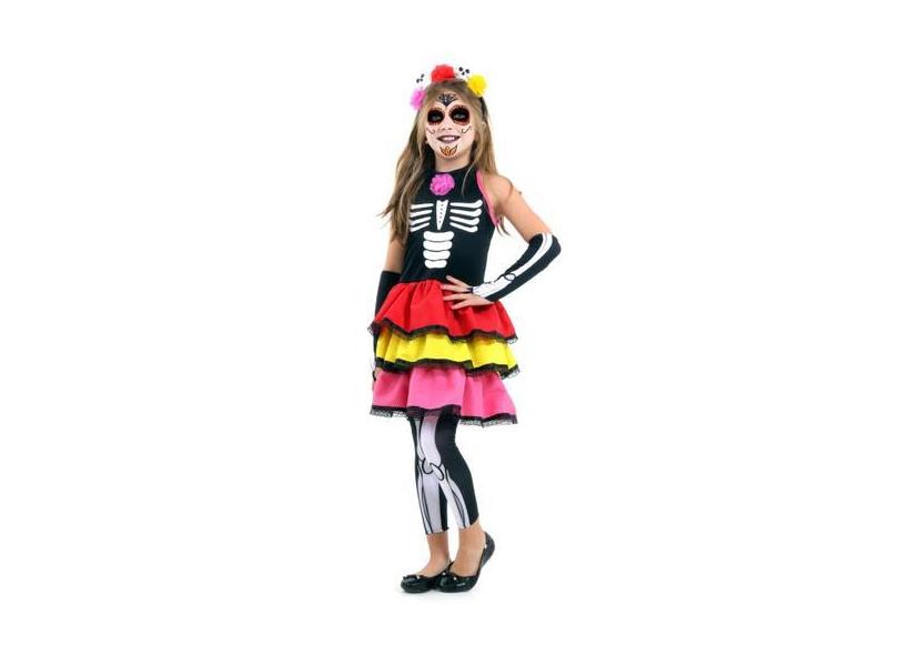 Fantasia Caveira Mexicana Colour Infantil - Anjo Fantasias, P