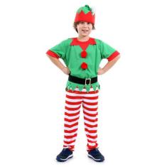 Fantasia Duende Masculino Infantil com Gorro - Natal - Sulamericana, U