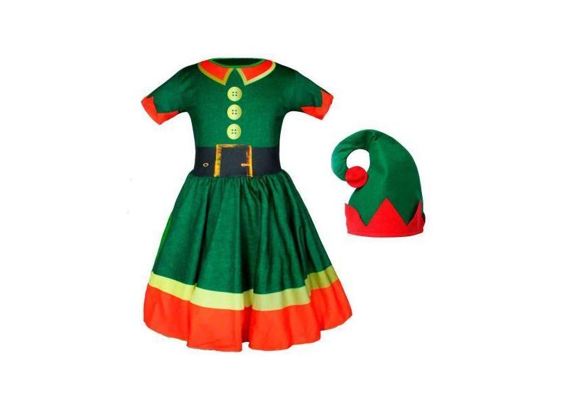 Fantasia Duende Verde Natalino Infantil Menina Elfo Com Gorro - Fantas