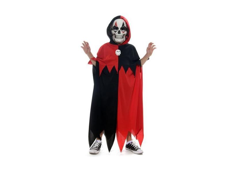 Fantasia Esqueleto Preto e Vermelho Túnica Infantil com Máscara - Hall