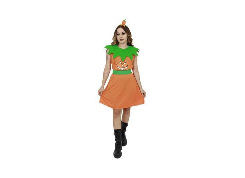 Fantasia Feminina Abóbora Halloween Vestido e Tiara Adulto - Sulameric