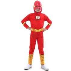 Fantasia Flash Infantil com Musculatura e Máscara - Liga da Justiça -