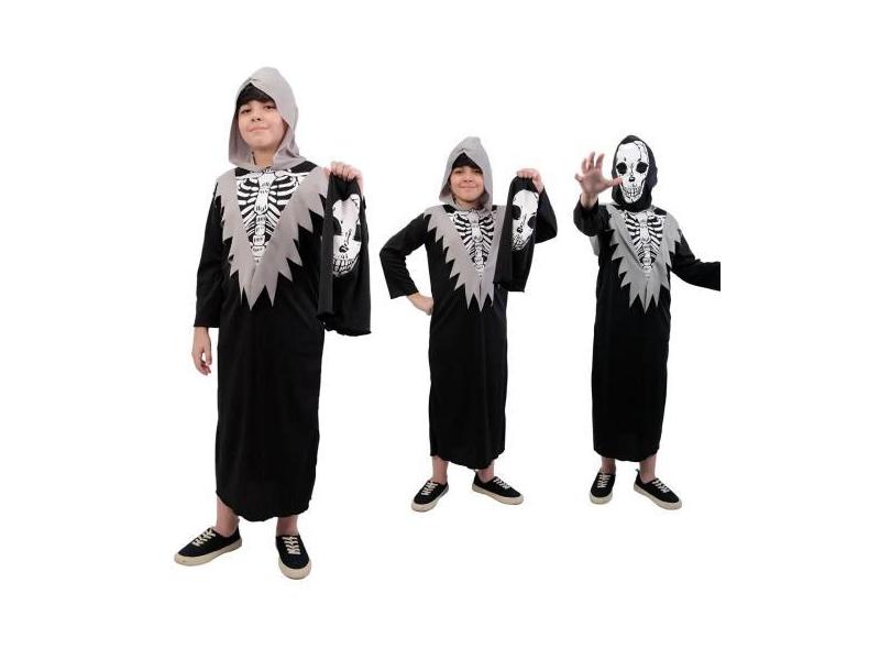 Fantasia Halloween Esqueleto Infantil Manto Preto e Máscara Caveira -