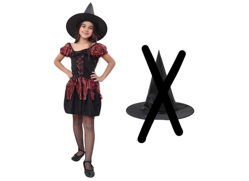 Fantasia Halloween Feminina Infantil Bruxinha Vestido de Bruxa Feiticeira Brilho Carnaval Noite do Terror Festa de Zumbi