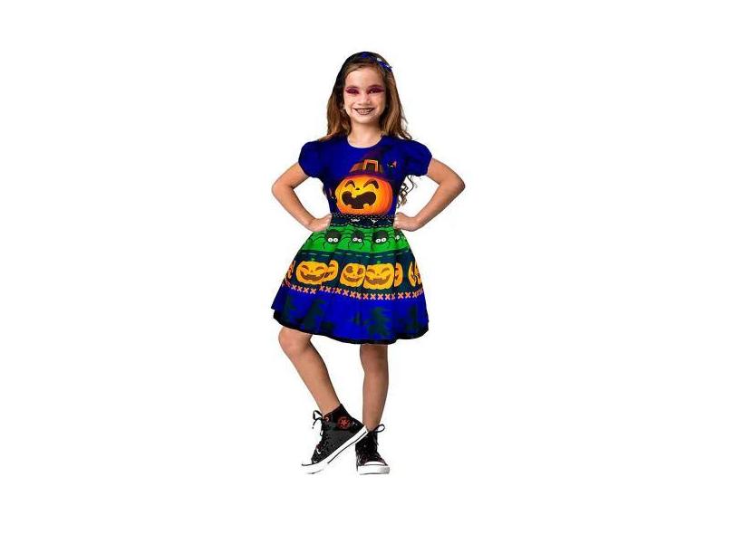 Fantasia Halloween Infantil Feminina Vestido Abobora Com Tiara - Fanta