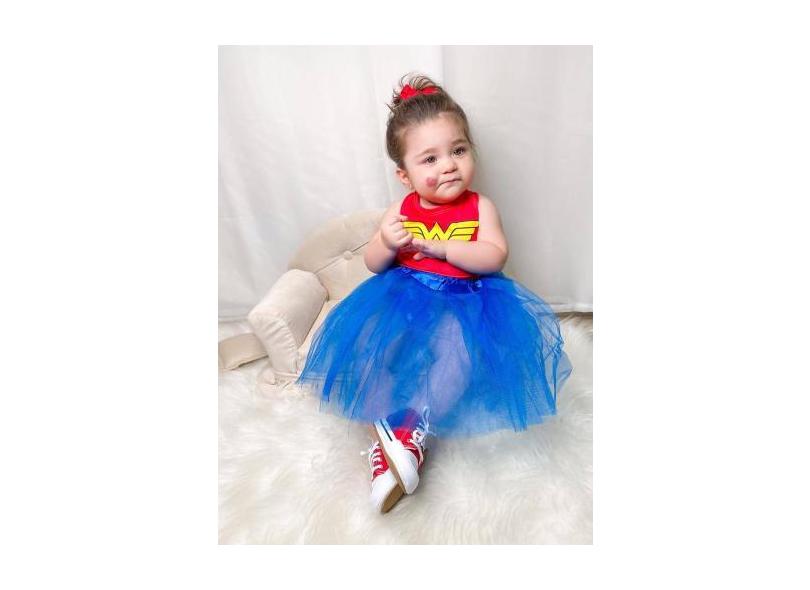 Fantasia Infantil mulher maravilha linda body e saia de tule do 2 ao 8