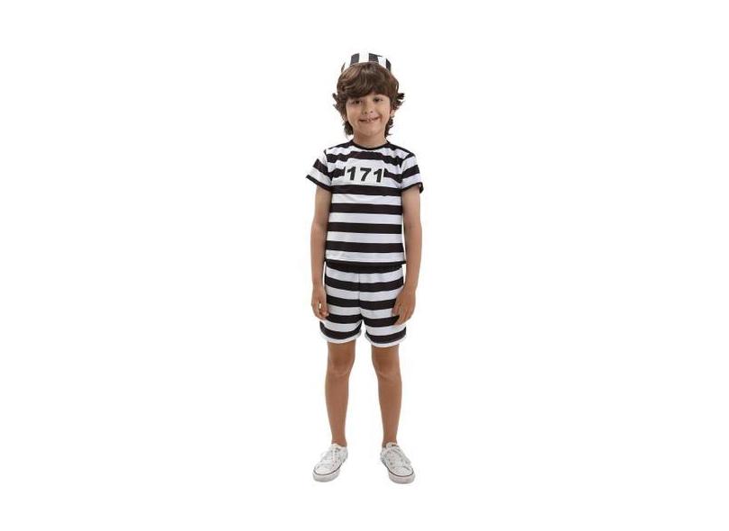 Fantasia Infantil Presidiário Preto/Branco Camiseta e Short Curto - Su
