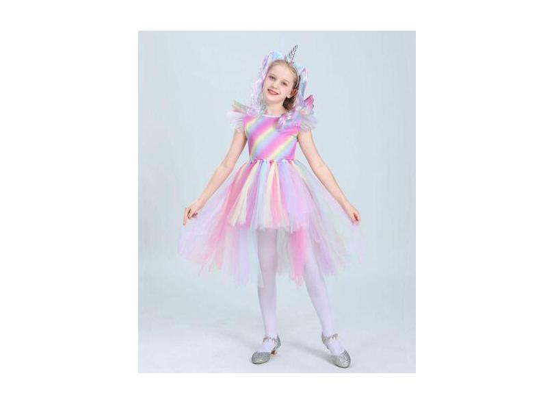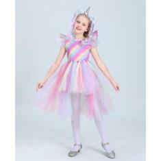 Fantasia Infantil Unicórnio Vestido Luxo Tiara Asas Colorido - D' Pres