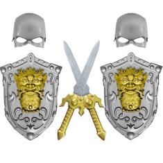 Fantasia Medieval Infantil com 2 Espadas Escudos e Máscaras - Toy Mast
