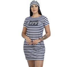 Fantasia Presidiária Adulto Vestido Com Manga Curta Listrado - HNG, Br