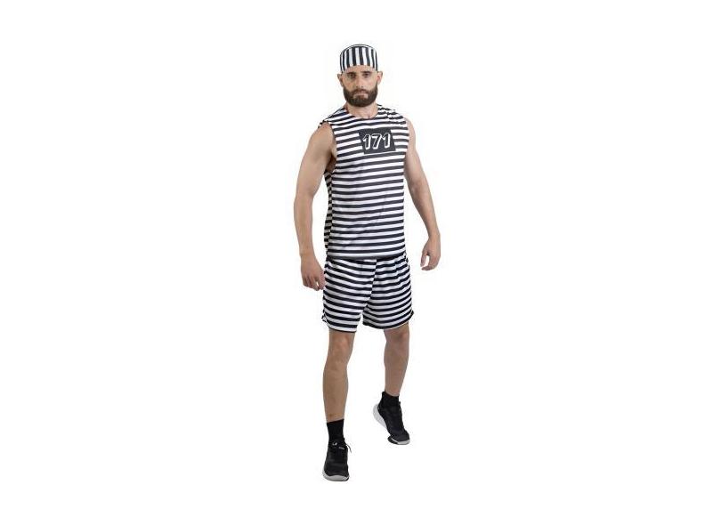 Fantasia Presidiário Adulto Masculino Com Bermuda Listrado - HNG, Pret