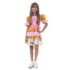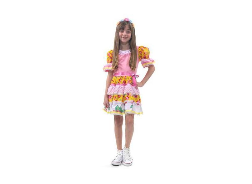 Fantasia Vestido Caipira Chic Rosa com Tiara Infantil - Festa Junina -