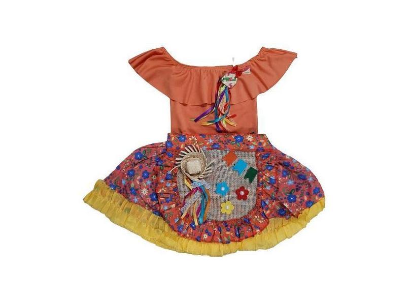 Fantasia vestido caipira festa junina infantil 3 peças - MC Presentes,