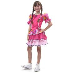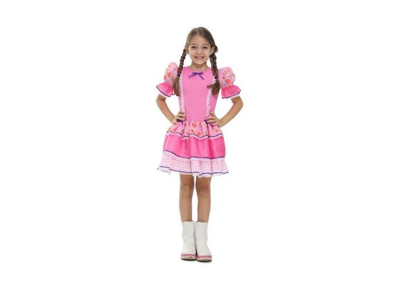 Fantasia Vestido Caipira Junina Rosa com Babados Infantil - Festa Juni
