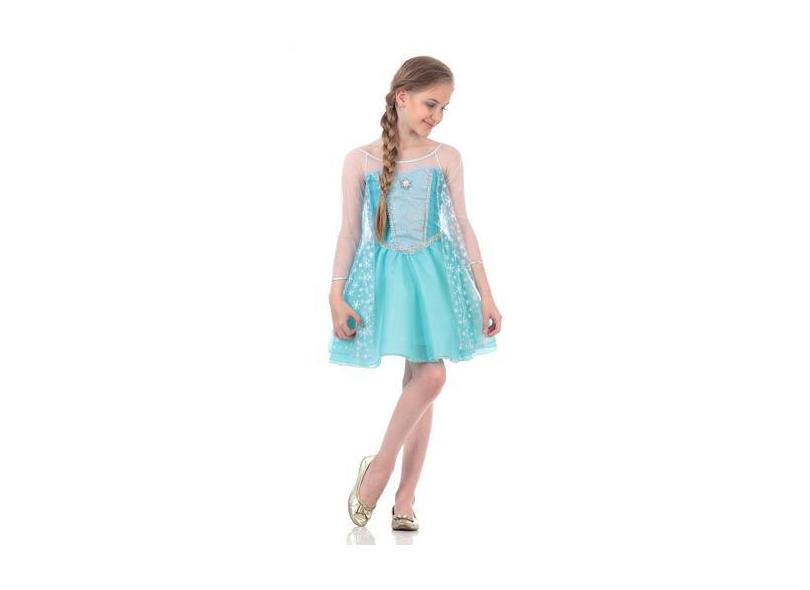 Fantasia Vestido Curto Elsa Verão Infantil - Disney - Frozen - Abrakad