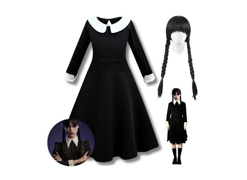 Fantasia Vestido Wandinha Família Addams Infantil + Peruca - Bela Impo