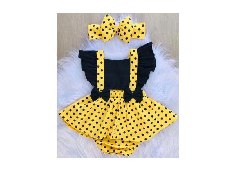 Jardineira Body Romper Infantil Bebe Fantasia Mesversario Abelhinha -