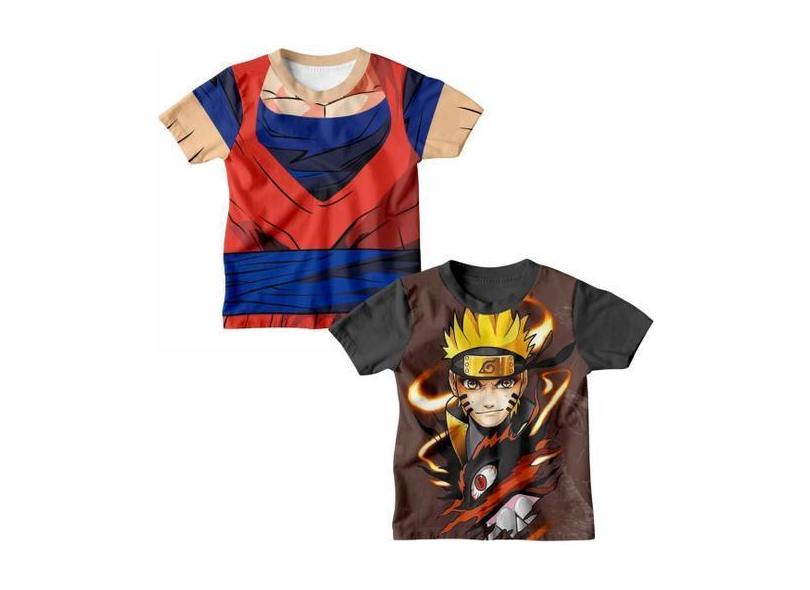 Kit 2 Camiseta Infantil Menino Fantasia Goku Dragon Ball e Naruto Ship