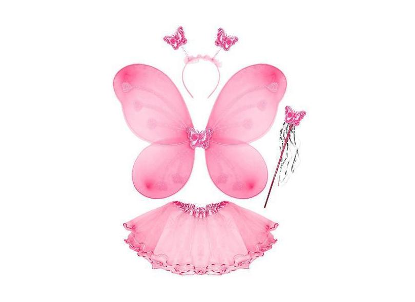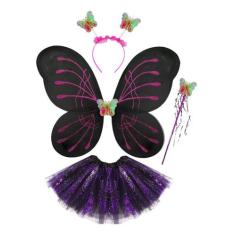 Kit Fantasia Borboleta Fada Infantil Asa Varinha Tiara Saia Resistente
