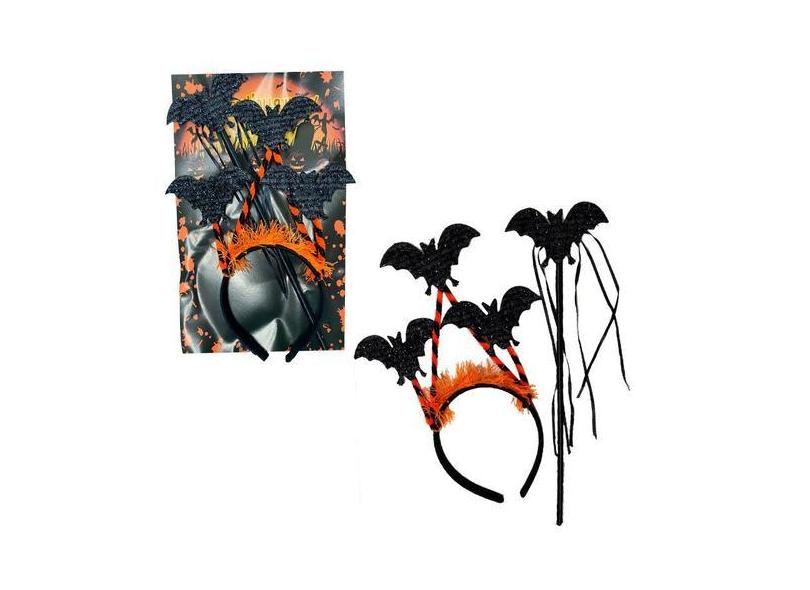 Kit Fantasia Morcego Tiara E Varinha Halloween Infantil - FX