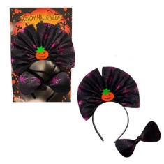 Kit Fantasia Temática Halloween Bruxa Infantil Tiara Gravata - FX