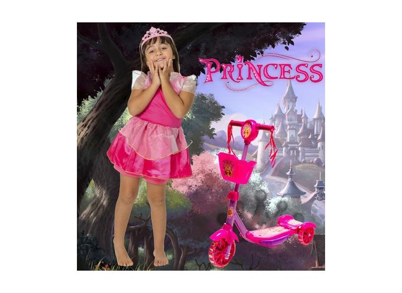 Kit Patinete Infantil Feminino e Fantasia Crianças Princesa - DM Toys