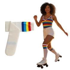 Meia Ate Joelho Branca com Listras Coloridas Adulto Fantasia - Lynx pr